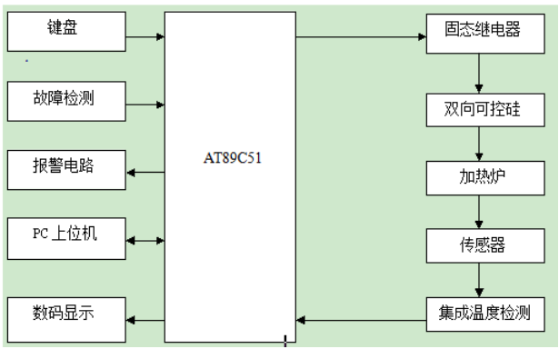 ◎ 该系统系详细的作业原理是这么的:单片机守时对炉温进行检查,经A/D改换后得到相应的数字量,送到计算机,计算机根据给定的操控规矩算法进行判别和运算,得到应有的操控量去操控加热系统系,然后完结对温度的操控。选用AT89C51单片机完结。
